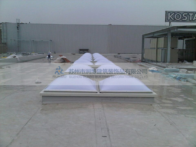 5.保溫系統:鋼連接件采用聚苯泡沫或聚酯泡沫等保溫材料進行填充,采光罩采用雙層保溫型罩體。有效地提高了室內的保溫效果。