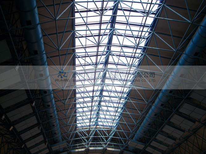 5.保溫系統(tǒng):鋼連接件采用聚苯泡沫或聚酯泡沫等保溫材料進行填充,采光罩采用雙層保溫型罩體。有效地提高了室內(nèi)的保溫效果。