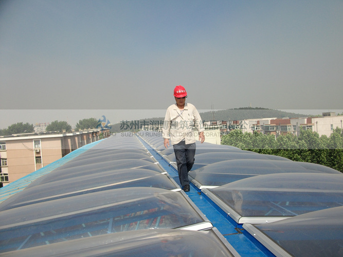 5 保溫系統:鋼連接件采用聚苯泡沫或聚酯泡沫等保溫材料進行填充,采光罩采用雙層保溫型罩體。有效地提高了室內的保溫效果。
