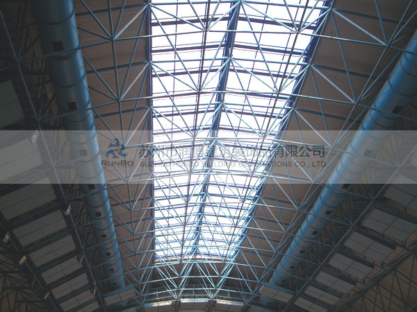5·保溫系統:鋼連接件采用聚苯泡沫或聚酯泡沫等保溫材料進行填充,采光罩采用雙層保溫型罩體。有效地提高了室內的保溫效果。
